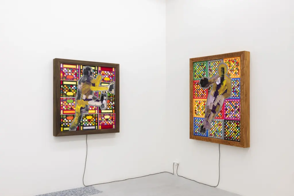Un’intera sezione della mostra è dedicata a Kobe Bryant, figura emblematica che unisce sport e cultura pop. Cornici realizzate con cassette del latte, simili a vetrate colorate, richiamano i playground e l’energia vibrante dei campetti da basket. Con pennellate gestuali che richiamano Willem de Kooning, Barrington omaggia Bryant, ripercorrendo la sua trasformazione da promessa del basket cresciuta in Italia a icona globale.