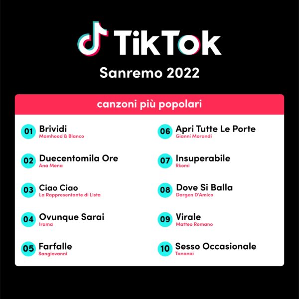 La popstar spagnola che al Festival si è esibita con il brano DUECENTOMILA ORE, giungendo alla penultima posizione ora è nei primi posti delle classifiche di Tik Tok come brano più ballato sul popolare social.