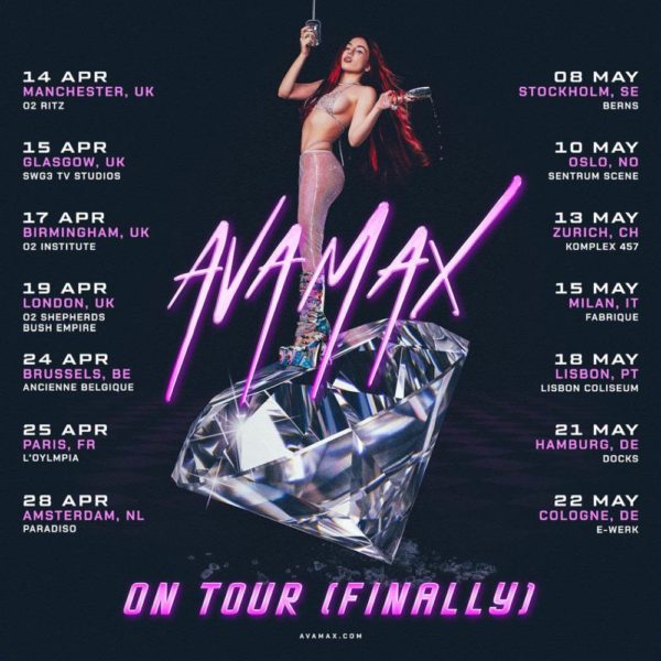 Il nuovo album Diamonds & Dancefloors è uscito a gennaio e ha consacrato l’ascesa di Ava Max nel panorama pop internazionale. Il progetto include la hit “Million Dollar Baby”, che ha raccolto oltre 130M di streams.