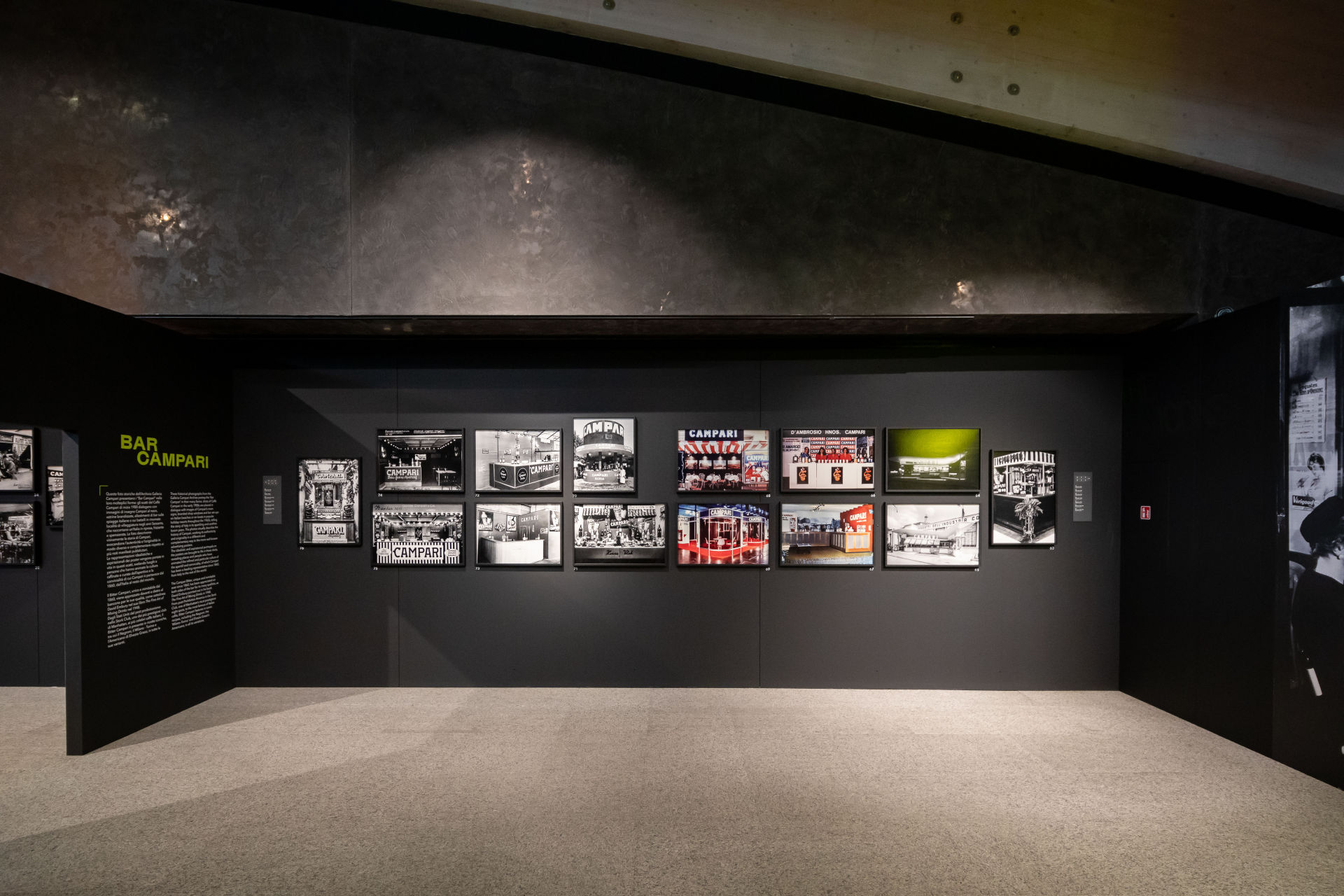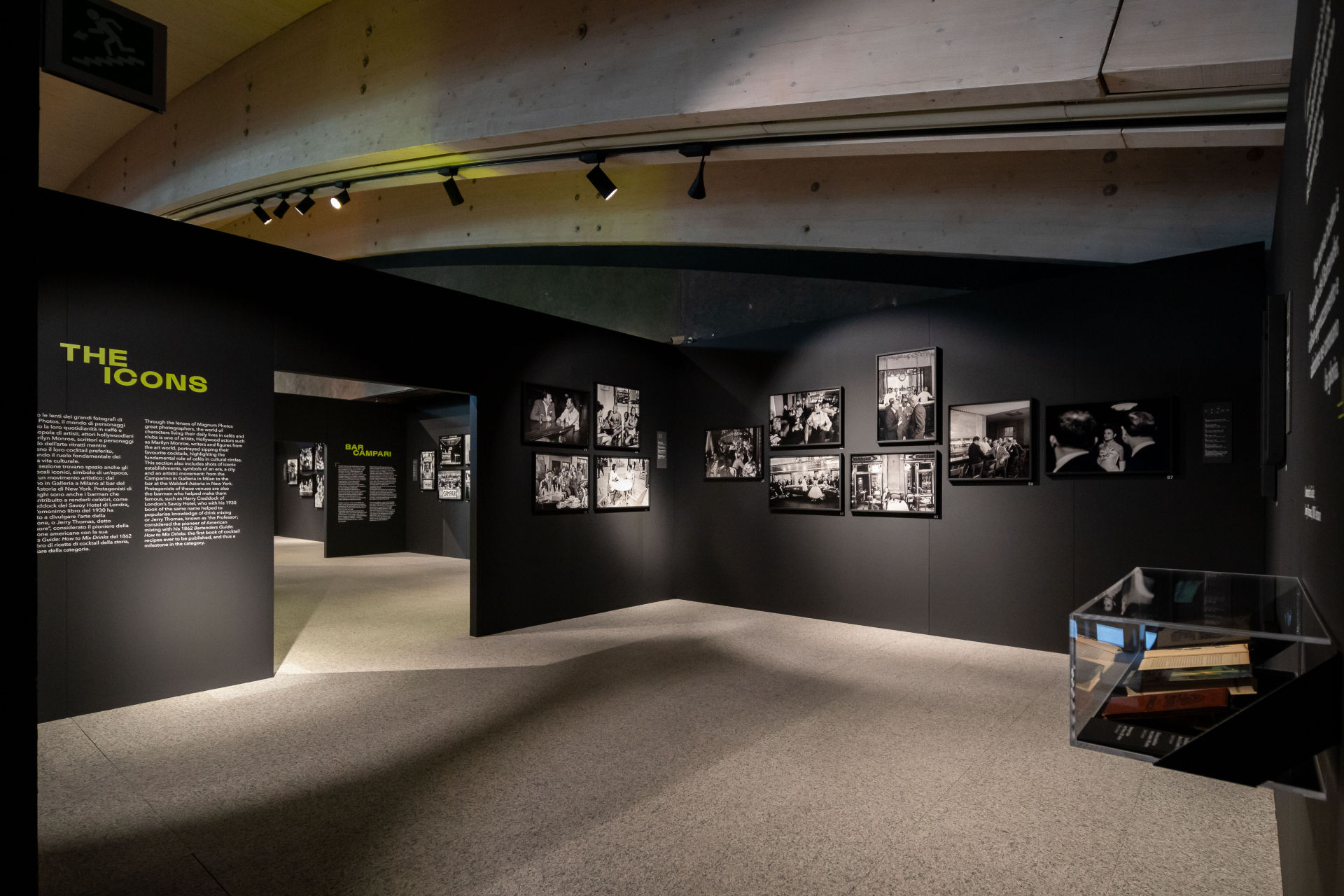 Suddivisa in tre sezioni tematiche – Sharing Moments, Bar Campari, The Icons – la mostra presenta immagini che costruiscono un racconto composto di storie, ritualità e personaggi dall’Italia e dal mondo. La raccolta di immagini dall’Archivio di Galleria Campari e gli scatti dei grandi fotografi di Magnum danno vita a una narrazione che esplora il tema a 360°, raccontato attraverso la lente del tempo. Mediante il dialogo tra media, supporti, epoche e immaginari diversi, viene restituita tutta la sfaccettata vitalità del mondo bar in un periodo storico unico, recente ma anche remoto, in un’esplorazione della sua connotazione sociale come luogo di incontro, aggregazione, svago e scambio culturale di cui Campari è protagonista dal 1860. L’allestimento presenta una quarta sezione espositiva, Campari Memories, che contiene una nutrita selezione di ricettari e libri sui cocktail da fine XIX secolo agli anni Duemila, oltre a oggetti ed ephemera originali legati al bar, alcuni dei quali mai esposti prima: menù, carte intestate, insegne di visibilità, bicchieri, attrezzi per la miscelazione, locandine e oggetti pubblicitari vintage.