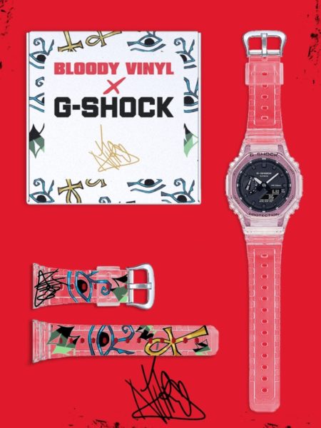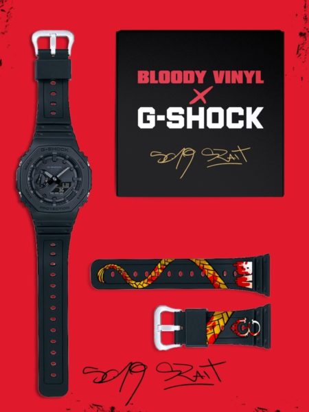 Come una vera e propria release musicale attesa dai fan, l’edizione limitata BLOODY VINYL x G-SHOCK, che comprende un G-SHOCK GA-2100 – versione full black o Skeleton – e un cinturino aggiuntivo personalizzato a scelta tra quello di Nitro o dei due producer, sarà venduta in prevendita esclusiva dal 6 dicembre. Per i fan di G-SHOCK che già possiedono un modello 2100, a partire dal 10 dicembre sarà inoltre possibile acquistare esclusivamente i cinturini personalizzati Bloody Vinyl, da intercambiare con quelli del modello che già possiedono.