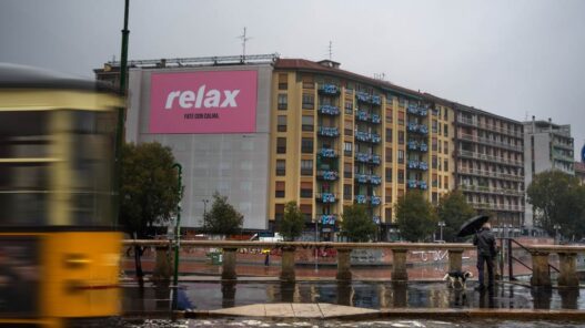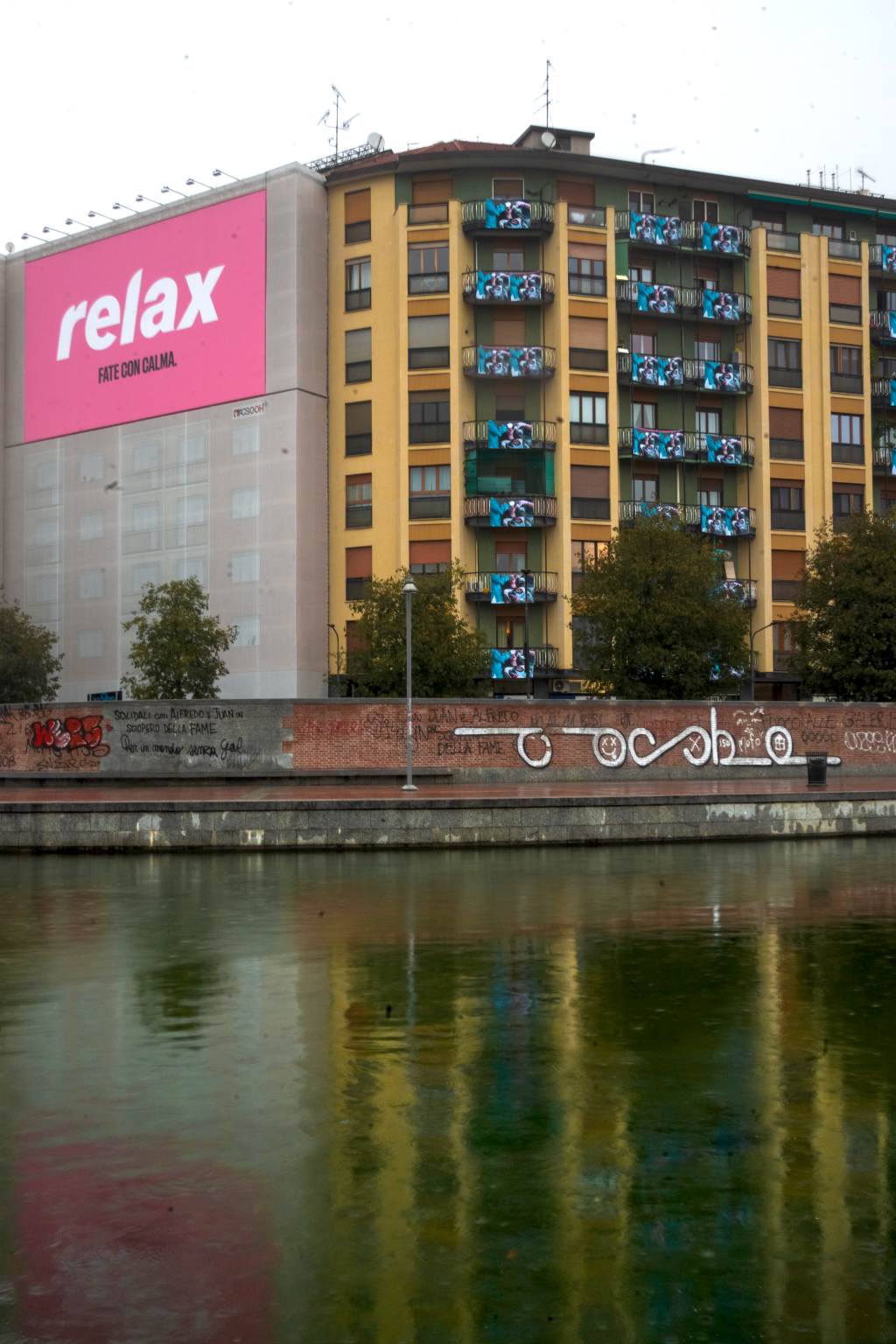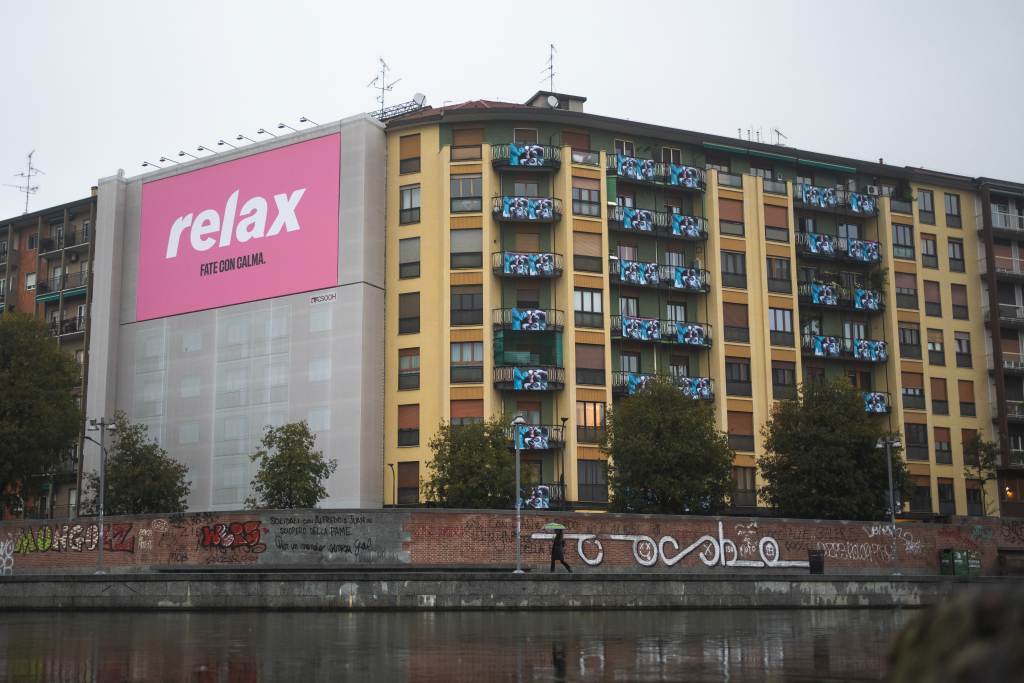 Dall’alba di questa mattina lenzuola con la copertina di “Relax”, nuovo disco di Calcutta in uscita a mezzanotte, sventolano da uno dei palazzi che si affacciano sulla Darsena.