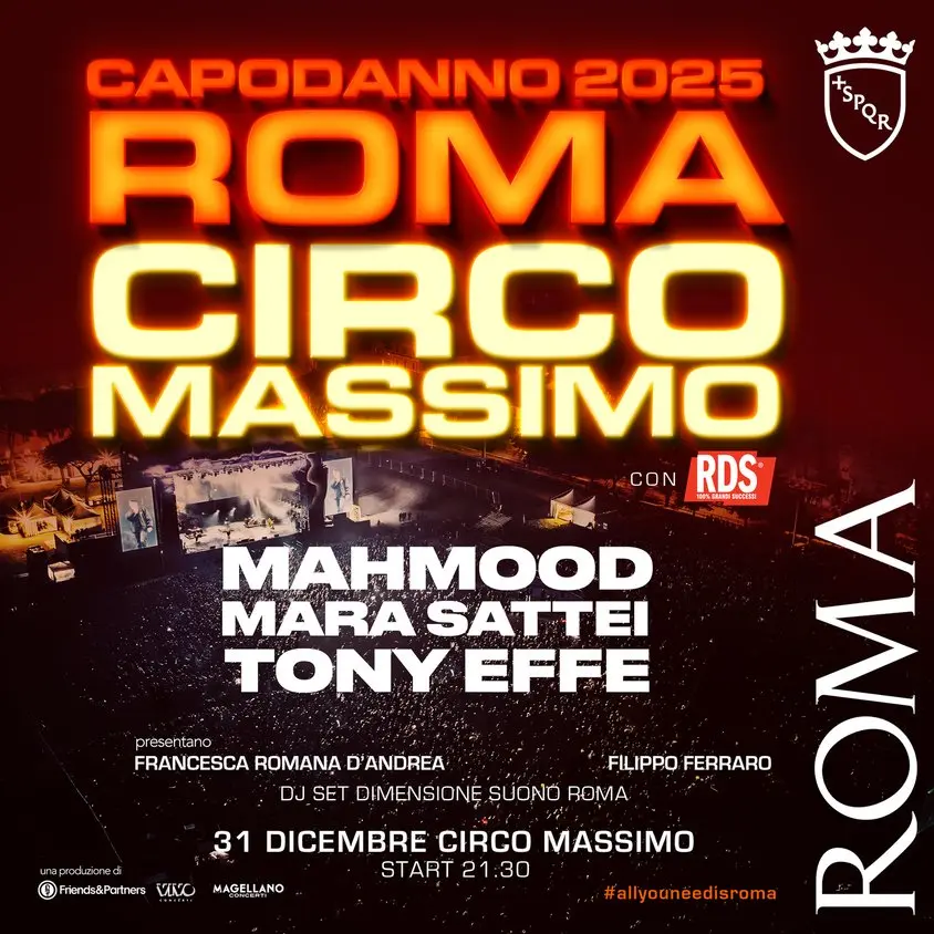 Il palco del Circo Massimo si accenderà con le straordinarie performance live di Mahmood, Tony Effe e Mara Sattei, che promettono di regalare momenti indimenticabili al pubblico. Dopo la mezzanotte, la festa continuerà con lo show di Don Cash e un esclusivo DJ set di Mauro Zavada Mandolesi, firmato Dimensione Suono Roma, per un intrattenimento che proseguirà fino a notte fonda.