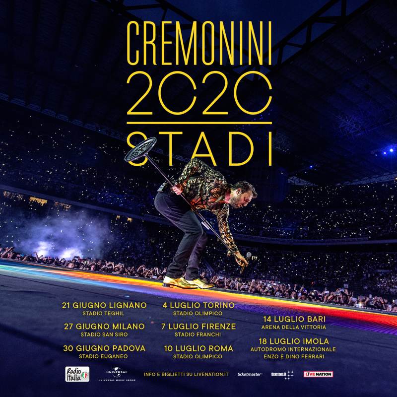 Il Cremonini Stadi 2020 è organizzato da Live Nation Italia, media partner è Radio Italia Solo Musica Italiana.