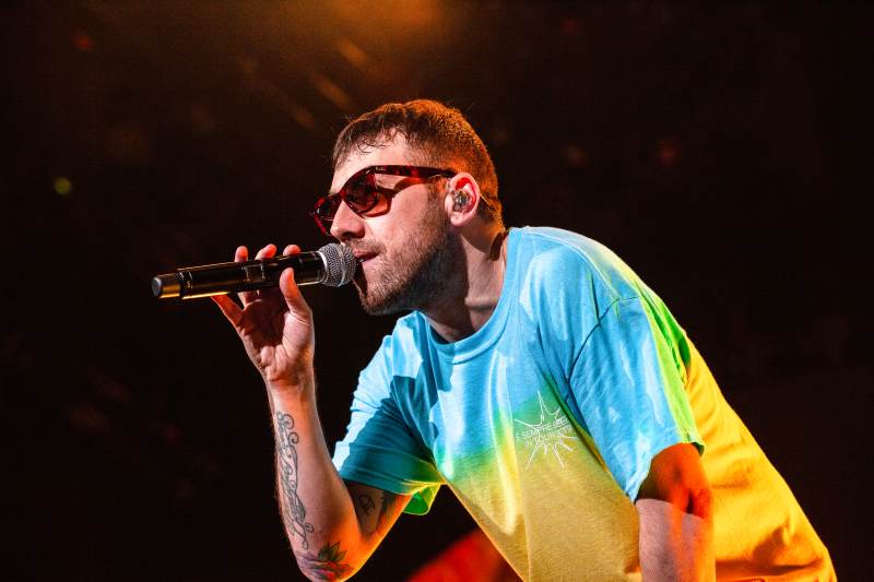 Il viaggio live di Coez prosegue prima con la cassa dritta e i synth filtrati dall’atmosfera a luci rosse dell’erotica Vai con dio e poi con Forever alone.