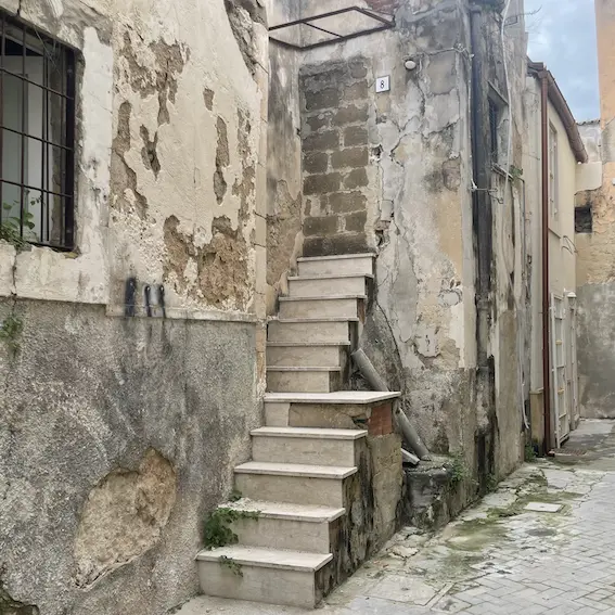 Sì, ho deciso volutamente di escludere la figura umana. Non mi interessa il ritratto come forma di autenticazione del reale. Mi pare spesso una modalità retorica, anche un po’ invadente. Preferisco raccontare l’azione dell’uomo attraverso ciò che lascia: un cavo, un piatto di plastica messo per spaventare i gatti, una sedia spostata. Sono tracce, segni, disfunzioni quotidiane. Mi attraggono i paradossi dell’abitare, gli oggetti spaiati, le scale che non portano da nessuna parte, i portoni murati. C’è una Sicilia che resiste in questi dettagli, una bellezza sghemba, che si manifesta nella decomposizione più che nella composizione.