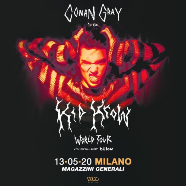 Il live di CONAN GRAY previsto mercoledì 13 maggio 2020 ai Magazzini Generali di Milano sarà un’occasione imperdibile per tutti coloro che vorranno immergersi nel pop sognante ed elettronico di questo giovanissimo artista.