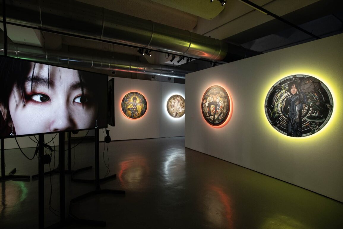La nuova serie Bardo #1 (2022) – termine tibetano che indica uno stato intermedio tra la morte e la rinascita – ritrae i sei avatar di DOKU con gli attributi dei regni buddisti di rinascita che incarnano, inseriti in una classica composizione mandala circolare. In queste opere, LuYang unisce l’aspetto profano dei mandala, presenti come simbolo decorativo nella cultura pop globale su magliette, libri da colorare e spettacoli di luce nei rave, e il loro significato magico e religioso, rendendole un ausilio visivo attraverso il quale interiorizzare contesti religiosi e spirituali complessi.