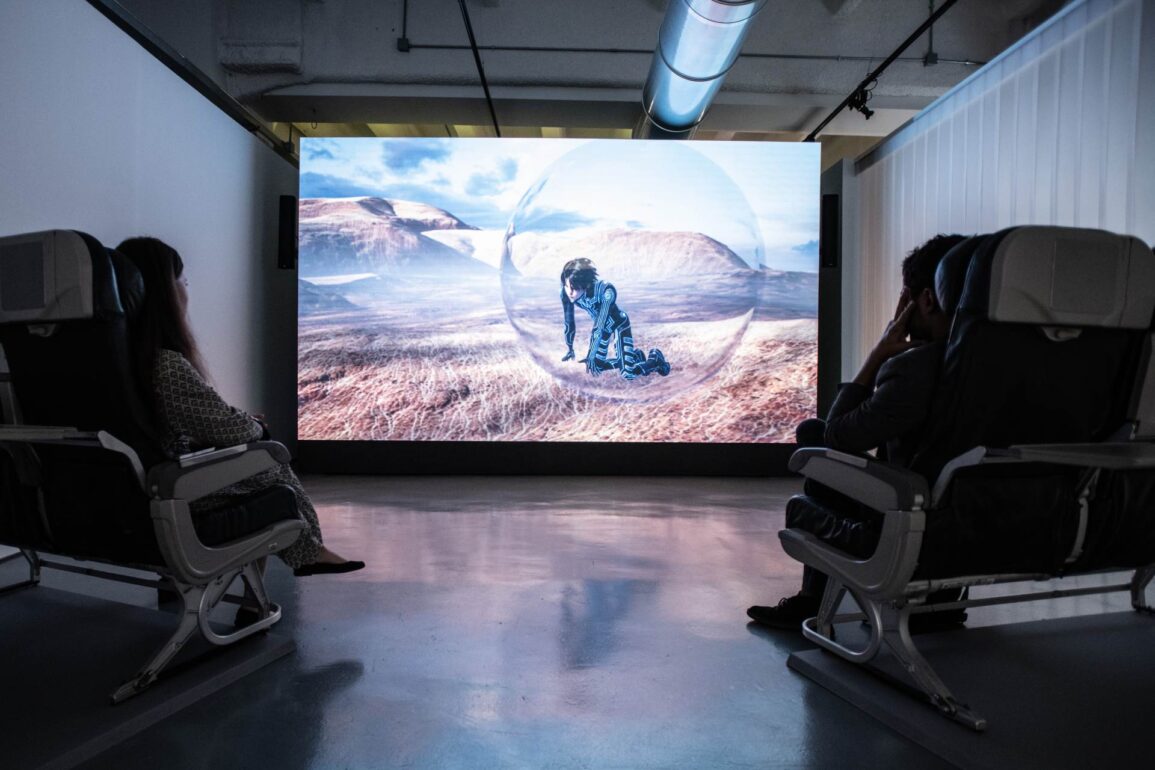 Tra le opere esposte, DOKU the Self (2022) – il primo film narrativo di LuYang mostrato in anteprima alla Biennale di Venezia lo scorso anno – presenta le sei reincarnazioni virtuali dell’artista. La struttura del film si basa sul samsara ed è una specie di radicale meditazione visiva: in immagini mozzafiato possiamo vedere come DOKU vive e muore in ciascuno di questi mondi illusori e inferni che incarnano l’adesione all’ego e al pensiero dualistico – una concezione del sé costituita da opposti: io-tu, bene-male, naturale-artificiale, maschio-femmina. Nelle loro varie versioni e look, gli avatar rappresentano i diversi stati di coscienza, le emozioni e le nevrosi che caratterizzano i loro mondi.