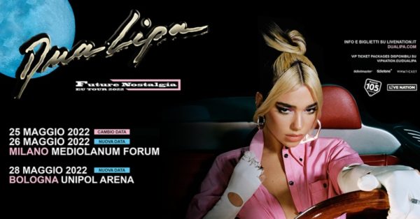 La data italiana del Future Nostalgia Tour di Dua Lipa, prevista il 12 ottobre 2021 sarà riprogrammata nel 2022, con l’aggiunta di una nuova data a Milano e una nuova data a Bologna.