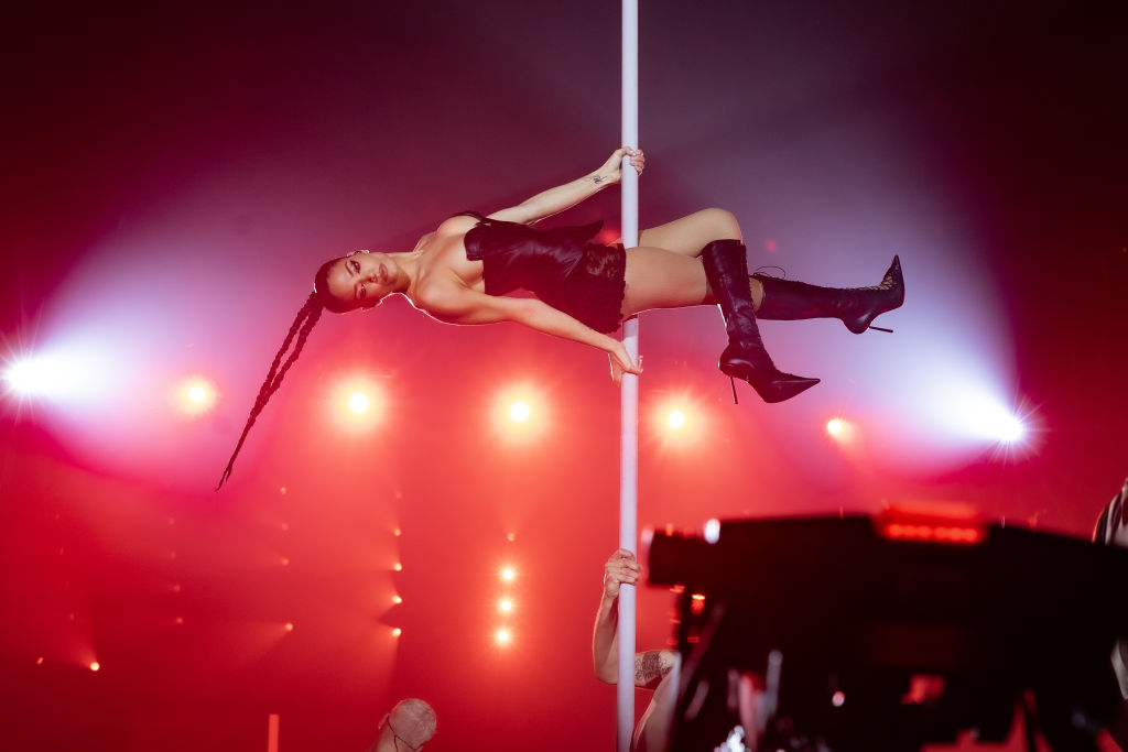 Il palazzetto si trasforma in un dancefloor dove è impossibile non lasciarsi travolgere dalle sonorità clubbing. Libertà è la parola chiave di questo segmento. L’esaltazione della libertà è anche alla base delle creazioni coreografiche che, grazie alla potente connessione tra Elodie e i ballerini, arrivano al pubblico in maniera diretta. Si chiudono le “porte del club” e si torna alla musica pop per i due blocchi finali.