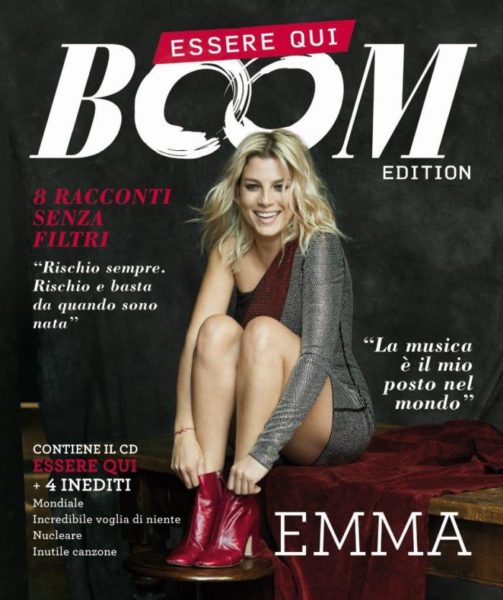 Esce venerdì 16 novembre “ESSERE QUI – B∞M EDITION” il nuovo progetto discografico di EMMA contenente il nuovo singolo “Mondiale”, tutti i brani del disco “Essere qui” e 3 inediti: “Incredibile voglia di niente”, “Nucleare” e “Inutile Canzone” e anche uno speciale formato MAGAZINE, interamente scritto e ideato da Emma, composto da 8 racconti senza filtri, immagini live e inediti scatti di Toni Thorimbert che ne catturano la vera essenza.
