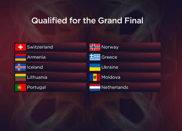 Ma ecco i risultati della prima semifinale. Accedono alla finale di sabato i seguenti paesi: