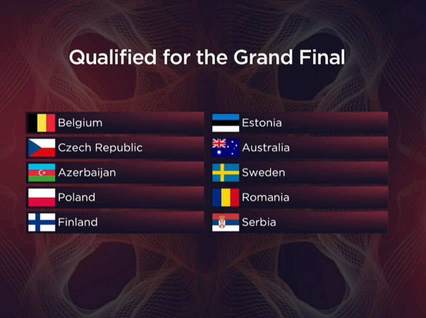 Svizzera, Armenia, Islanda, Lituania, Portogallo, Norvegia, Grecia, Ucraina, Moldavia, Paesi Bassi.