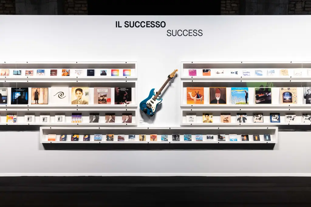 Il percorso è arricchito da copertine di album, manifesti storici, fotografie e cimeli rari, che restituiscono la poliedricità di un artista capace di attraversare oltre cinquant’anni di carriera come innovatore e precursore.