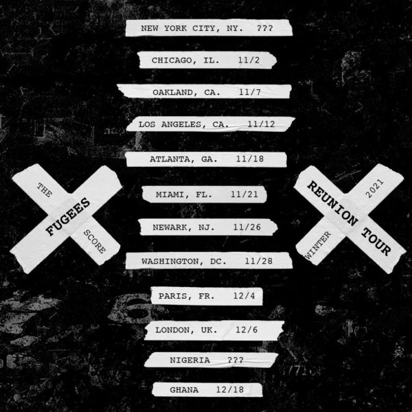 Lauryn Hill, Wyclef Jean e Pras Michel hanno annunciato che riformeranno i Fugees, dopo 15 anni, per un tour mondiale che celebra il 25esimo del loro storico disco ” The Score”.