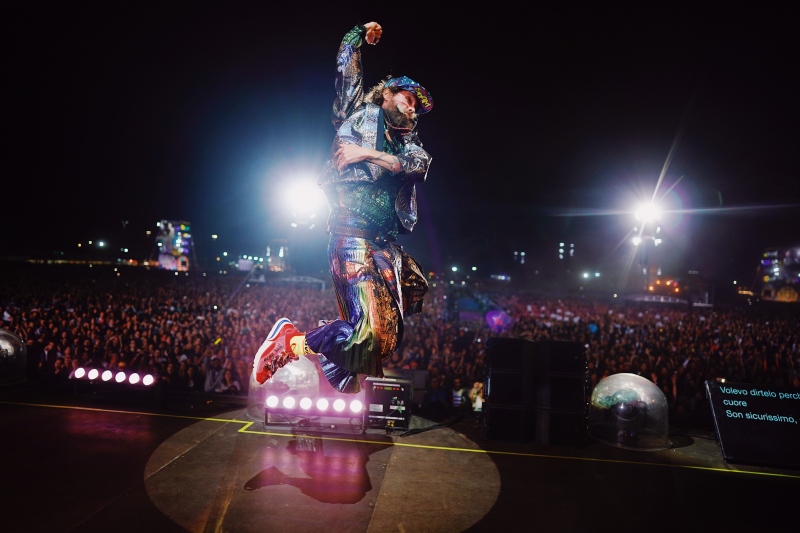 Mentre in serata sul palco insieme a Lorenzo è salito Tommaso Paradiso che ha cantato insieme a Lorenzo “Felicità Puttana” e  “La Luna e la gatta” con Takagi & Ketra, ed  è tornato anche Salmo che ha infuocato il pubblico in una versione del “L’ombelico del mondo” insieme ai componenti di Rockin’ 1000 e con la sua “90 Min.” e “”Ho paura di uscire”. Una botta allo stomaco !