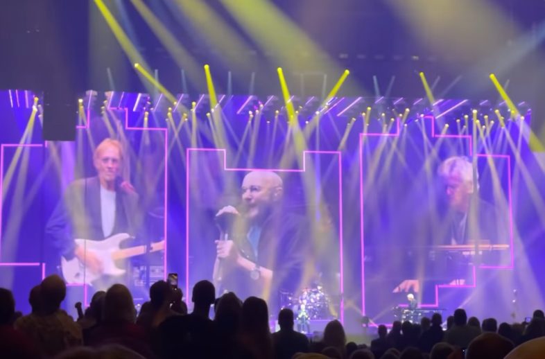 Sul palco, dopo 14 anni (l’ultima volta è stata nel 2007) i tre membri storici della band: Phil Collins, Tony Banks, e Mike Rutherford, oltre che il bassista e chitarrista Daryl Stuermer e il figlio ventenne di Phil Collins Nic, che ha preso il posto del padre alla batteria.