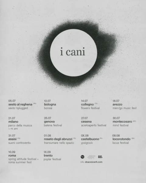 Dopo il successo del tour autunnale nei club, i cani tornano in tour dal 5 luglio per una serie di concerti nei festival e nelle location più prestigiose dell’estate italiana.