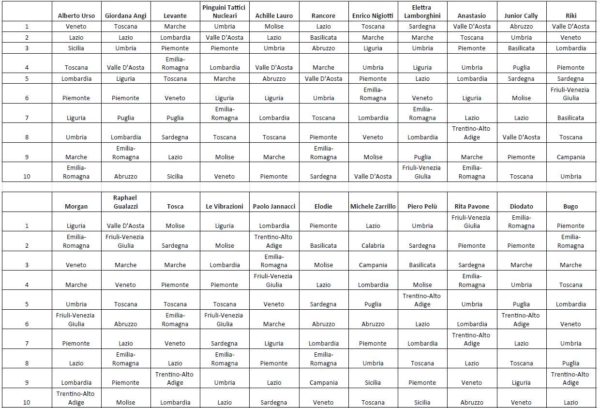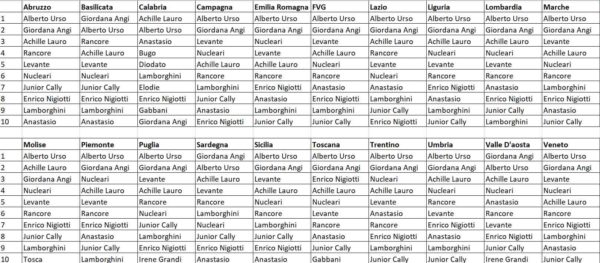 GLI ARTISTI PIU’ AMATI REGIONE PER REGIONE