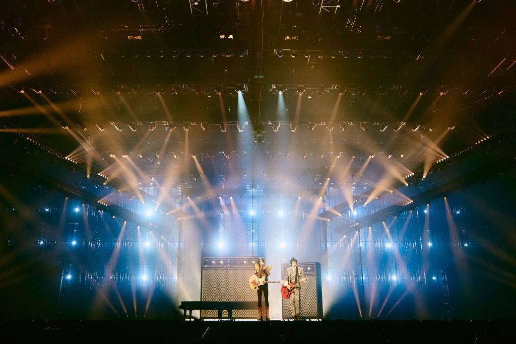 Niente effetti speciali o coreografie roboanti, ma scenografie semplici e dense di significato, le stesse che ha portato nei club e che porterà in giro quest’estate, con «due super amplificatori ispirati a un tour di Neil Young» che ci hanno fatto subito pensare all’Alchemy Tour 2013, che non a caso a Roma ha fatto tappa proprio all’Ippodromo delle Capannelle per Rock in Roma.