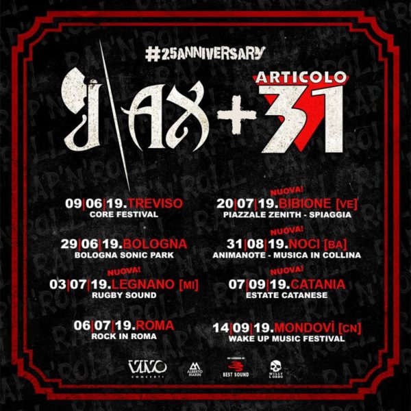 J AX + Articolo 31 in collaborazione con Dj Jad, annunciano nuove date estive.