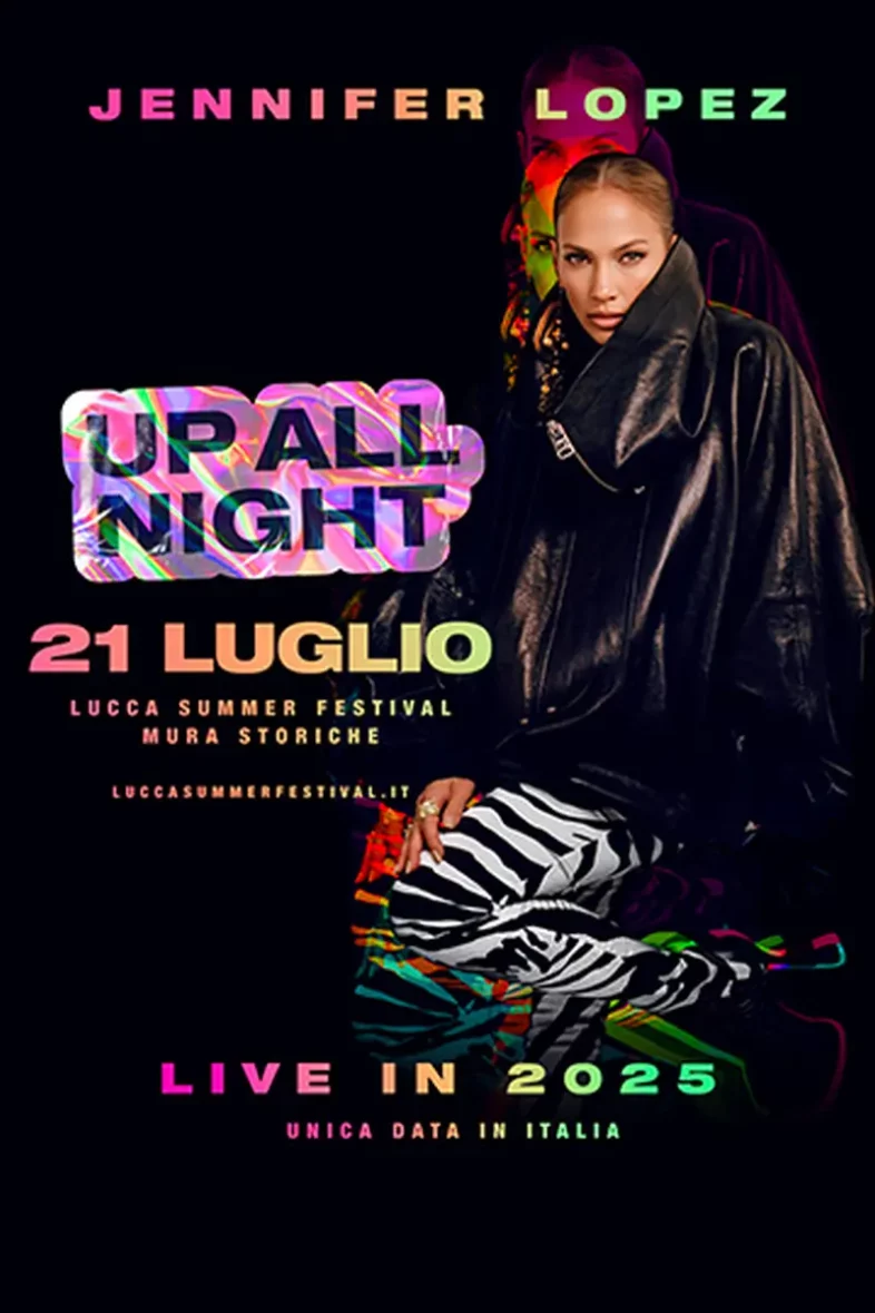 Jennifer Lopez torna sul palco con l’unica tappa italiana del suo tour mondiale Up All Night Live in 2025, attesa per il 21 luglio nell’affascinante cornice dell’Area Mura Storiche di Lucca, all’interno del Lucca Summer Festival.