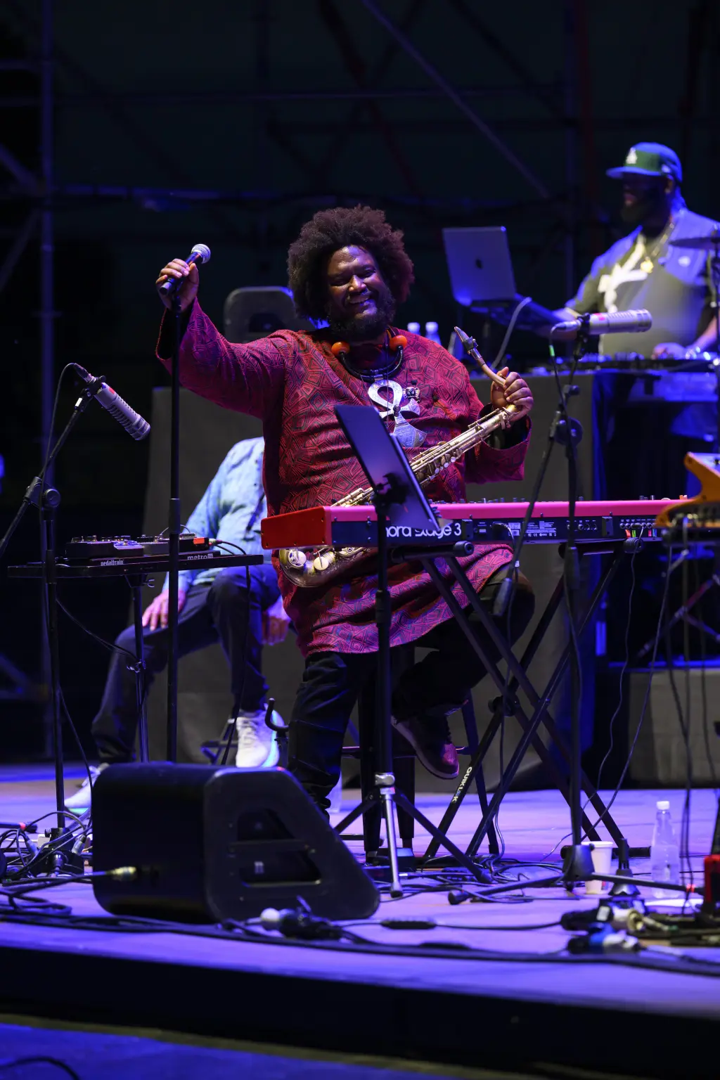 Sax tenore in mano, Washington ha guidato un ensemble affiatato – batteria, tastiere, basso e cori – lungo una traiettoria musicale che ha toccato spiritual jazz, soul, afrobeat e richiami sinfonici, in un continuo gioco di equilibrio tra scrittura e improvvisazione. I brani, spesso dilatati, si sono trasformati in suite fluide e trascinanti, capaci di parlare tanto al pubblico più colto quanto a chi cercava puro trasporto emotivo.