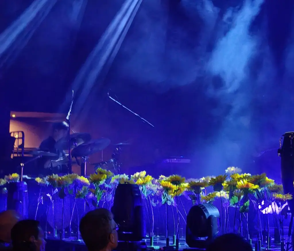 Sul palco, allestito come un campo di girasoli, però, qualcosa è cambiato davvero: non più soltanto due figure chine su consolle e laptop, ma una vera band a dare corpo e respiro ai suoni. Batteria, basso, chitarra, percussioni, fiati e tastiere: una formazione che trasforma i beat e samples in una sinfonia viva, organica, potente. La musica di Kruder & Dorfmeister è invecchiata benissimo ed è ancora visione e futuro.