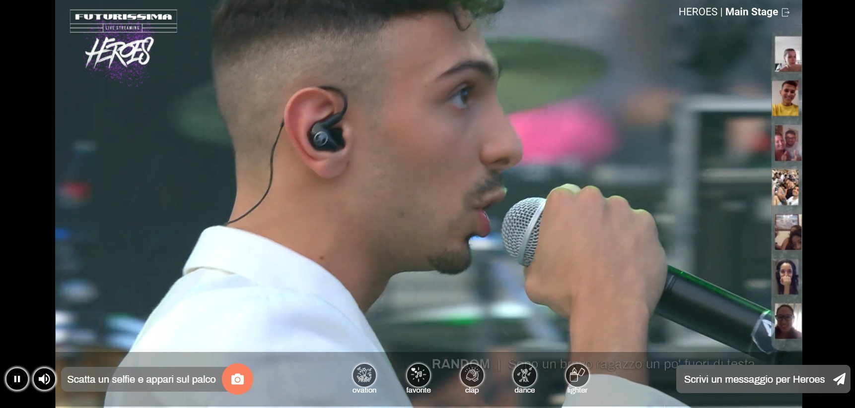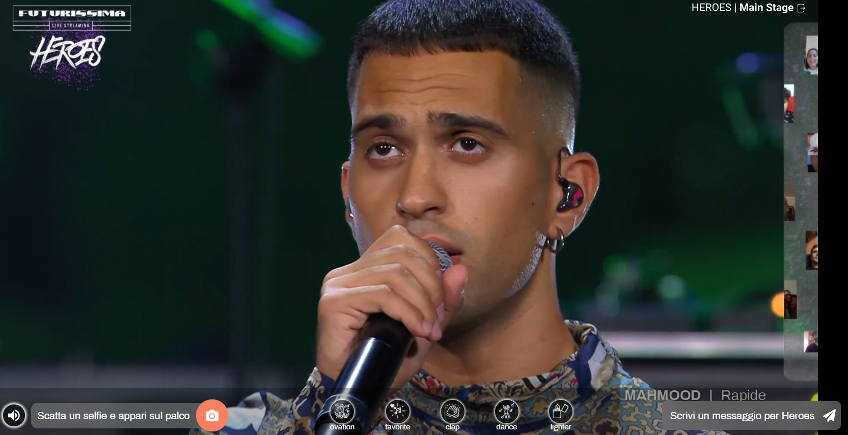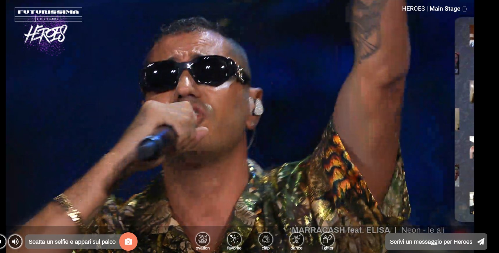 Il concerto disponibile in live streaming sulla piattaforma Futurissima.net e tramite app mobile A Live per Futurissima. Partecipando a Heroes potrai muoverti su diversi palchi virtuali e la fruizione dell’evento sarà arricchita da varie opportunità di interazione e socializzazione. Un’esperienza mai provata prima in un evento digitale!