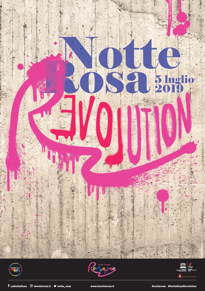 Ogni anno “La Notte Rosa” si contraddistingue per la scelta di una tematica particolare. Il claim di questa 14ª edizione (a cura di Expansion Group) è “Pink R-evolution”: a 30 anni dagli eventi storici che hanno segnato la volontà di superare i confini e di abbattere muri, l’obiettivo di questa edizione è proprio quello di riscoprire le relazioni e ritrovare il piacere di stare insieme, uniti anche nelle differenze.