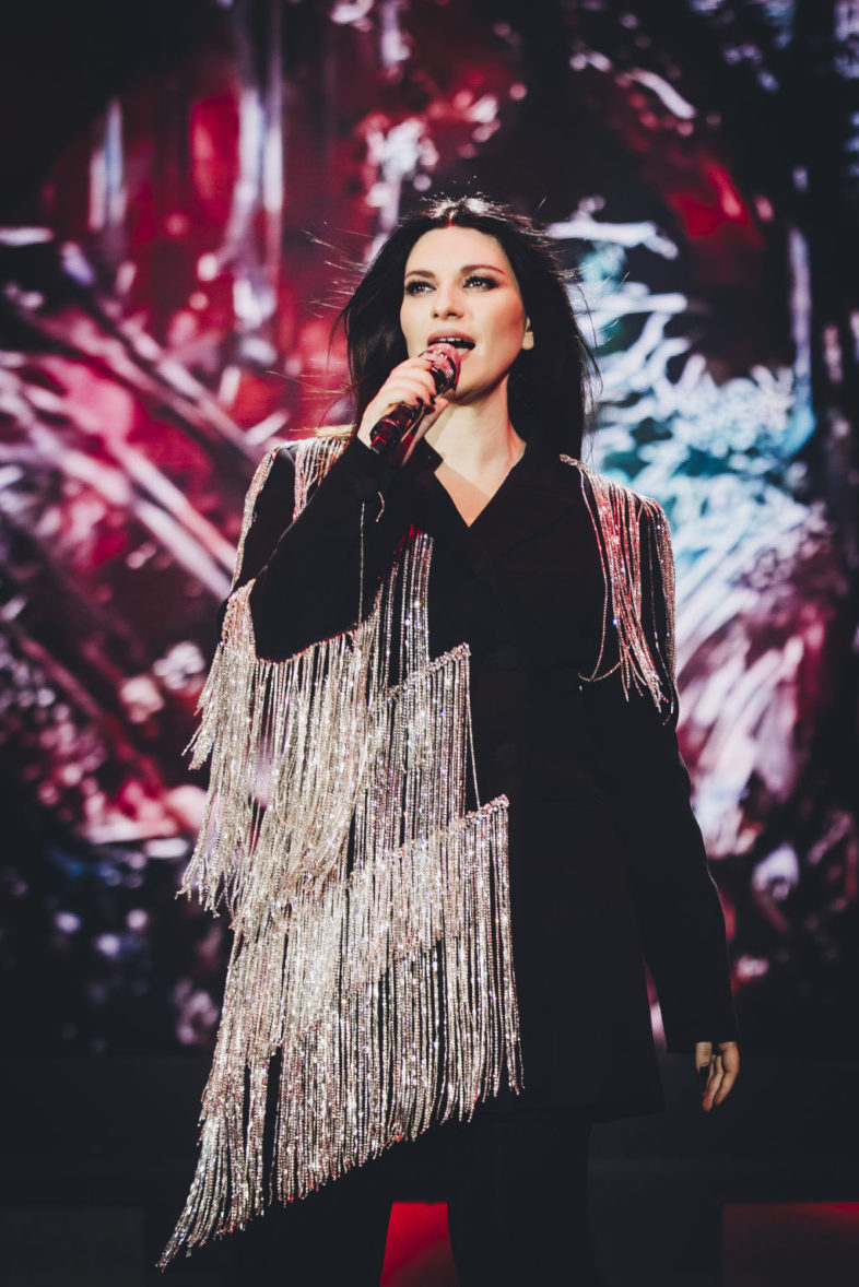Blocco II: Laura, in un abito firmato Amen, impreziosito da frange color argento, torna in scena seduta sull’iconica poltrona NEMO ed è la volta di SCATOLA (colonna sonora del film Amazon Original “Laura Pausini – Piacere di conoscerti”) seguita da E RITORNO DA TE. È la volta poi del Medley 2000 con LIMPIDO, SURRENDER, CON LA MUSICA ALLA RADIO e poi il Medley Romantico che si apre con un primo brano a sorpresa, diverso per ogni data del tour, seguito da NON È DETTO, LATO DESTRO DEL CUORE, NON HO MAI SMESSO e IN ASSENZA DI TE, sulle cui note un ballerino solista si esibisce con un Bolero di Ravel inedito. È poi la volta di BENVENUTO, SIMILI (dedicato alla bellezza della diversità e contro le divisioni di genere) e LE COSE CHE VIVI. Dopo uno spunto di riflessione, dedicato alla battaglia contro la violenza sulle donne, tematica per cui Laura si batte da anni, sentita oggi come non mai, è la volta di IO SÌ (SEEN), colonna sonora del film “La vita davanti a sé” e con la quale Laura ha vinto un Golden Globe e ha ricevuto una nomination agli Oscar. Qui il palco si tinge di rosso, come anche l’abito custom made realizzato per Laura da Valentino, con una coreografia toccante che si chiude simbolicamente con il gesto universale per chiedere aiuto contro la violenza sulle donne. A seguire VIVIMI e SORELLA TERRA (presentata per la prima volta nel World Tour 2009 quando, in tempi non sospetti, Laura cercò di attirare l’attenzione sul cambiamento climatico). Il secondo blocco giunge al termine sulle note di ZERO, ultimo singolo tratto da ANIME PARALLELE, arricchito da geyser ed effetti speciali. Un’esplosione di colori anche sull’abito indossato dall’artista e firmato Pucci.