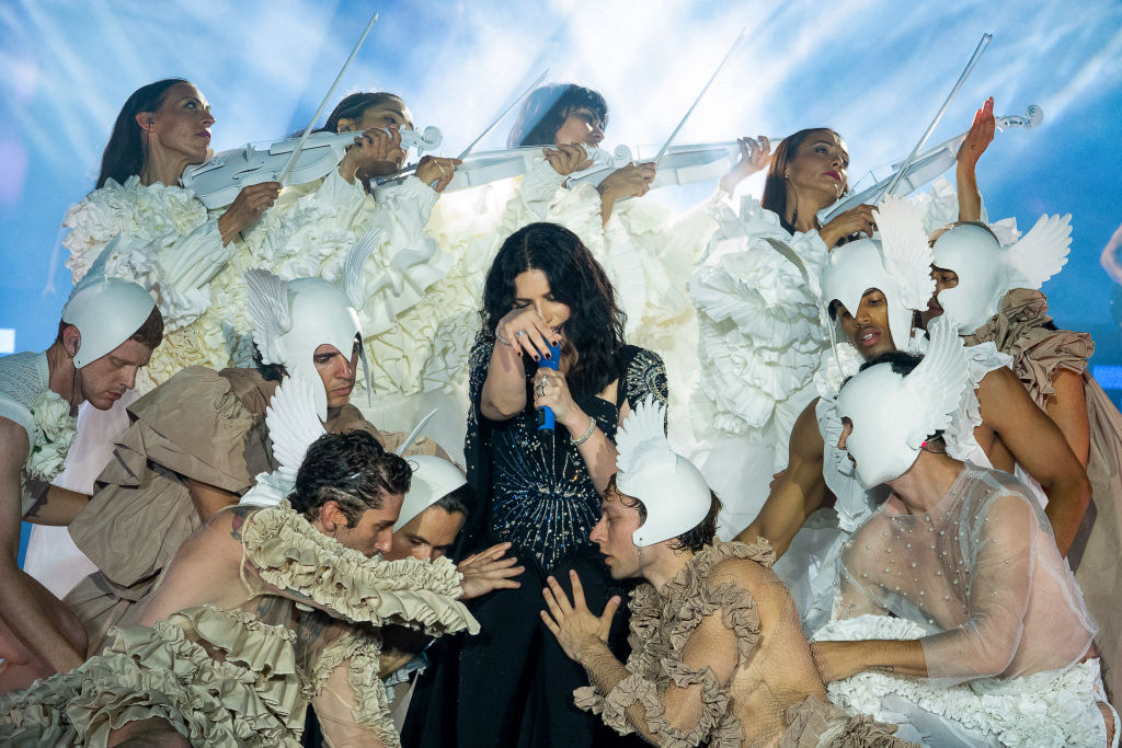 Il blocco continua con INVECE NO, ricreando un quadro di angeli viventi che regala al pubblico un momento commovente, e poi RESTA IN ASCOLTO, title track dell’album che le valse un Latin Grammy Award, un Billboard Latin Music Award e, soprattutto, un Grammy Award come Miglior Album Pop Latino dell’anno, e termina con PRIMAVERA IN ANTICIPO, una delle canzoni di Laura da sempre più amate dal pubblico, che quest’anno coinvolge tutti gli artisti presenti, musicisti, cori, ballerini e performer per un finale di secondo tempo molto suggestivo e sugli schermi un omaggio alla città di Venezia.
