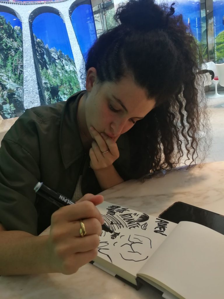Mio padre è un pittore. Ho sempre vissuto a contatto con l’arte e fa parte di me. Mi piace viverla, andare a mostre per scoprire cose nuove ma anche disegnare ed esprimermi così. L’ultima mostra che ho visto? Jake e Dinos Chapman alla Fondazione Prada. Fantastica ed intensa, una sorte di Bosh del 2019.