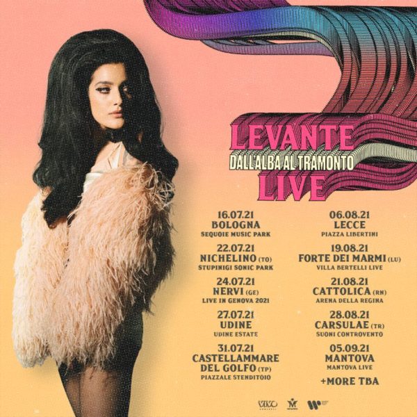 Levante annuncia le prime date di DALL’ ALBA AL TRAMONTO LIVE previste per l’estate 2021. Dieci show che la porteranno ad esibirsi in tutta Italia.