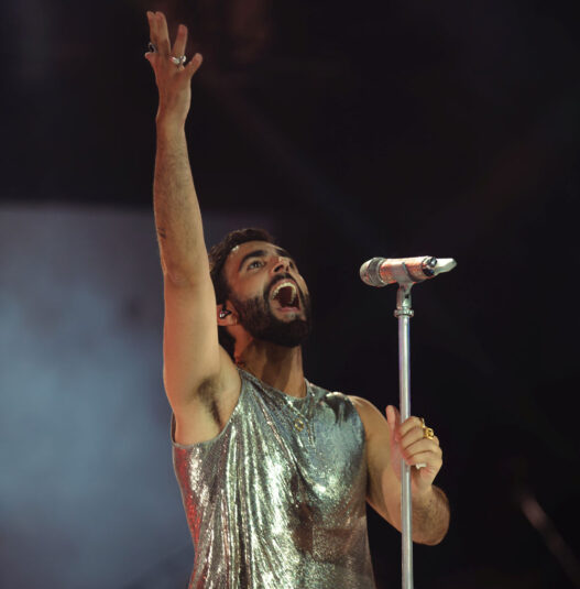 Mentre il pubblico è pronto a lasciare l’arena il palco si riaccende a sorpresa per Buona vita, dal chiaro sapore latino con una forte componente percussiva con anche timbales, congas e bonghi, che si fonde con un basso synth che ricorda un po’ le sonorità “à la Stromae”. È il finale ideale di questo percorso, un augurio e un ringraziamento sincero per tutti i presenti che Marco fa presentandosi spogliato dei costumi di scena in pantaloncini e canotta (ancora Versace).