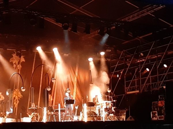 Mentre il sole cala lievemente e piano per lasciar spazio alle luci del Castello Sforzesco suona Ettore Bianconi, fratello di Francesco, mente e mani del progetto :absent., già componente dei Baustelle. Per una buona mezz’ora siamo in viaggio oltre il tempo e lo spazio, basta chiudere gli occhi per ritrovarsi altrove. Poi arriva il buio, e allora irrompe Francesco con la sua band – ho studiato, sono tutti bravissimi musicisti – ed è come una mano che ti si posa sulla spalla per riportarti al qui e ora. Per ascoltare Bianconi devi esserci, non puoi vagare, non puoi perderti. E’ musica di presenza la sua, non di evasione. E’ musica di comprensione, non di interpretazione. E’ suono vivo, solido, fermo, non evocato.