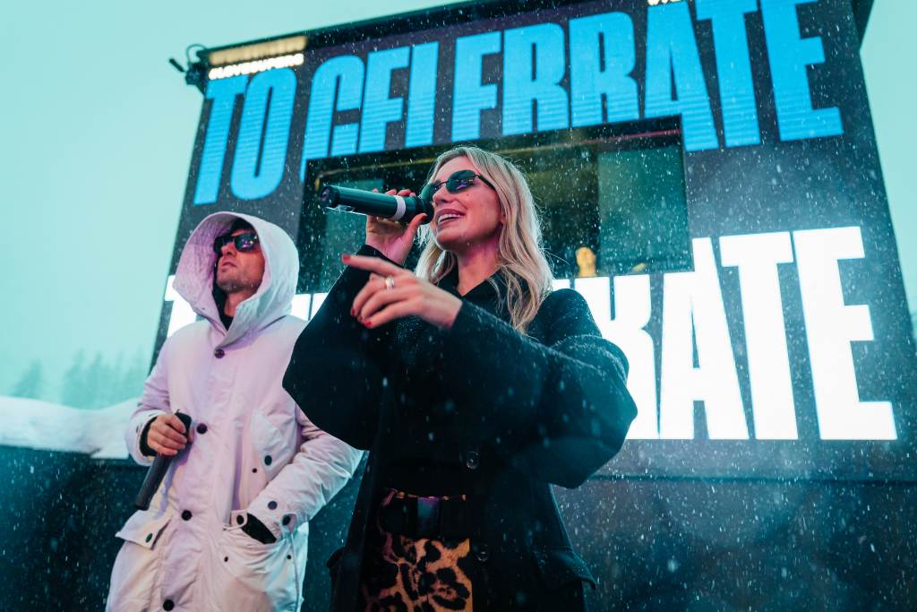 Il duo milanese si è esibito nel White Party, un vero e proprio tripudio di luci, musica e champagne, il tutto accompagnato e incorniciato da una copiosa nevicata.