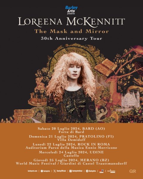 Loreena McKennitt sarà ancora in Italia nei prossimi mesi con cinque nuovi appuntamenti estivi per celebrare i trent’anni di ‘The Mask and Mirror’.