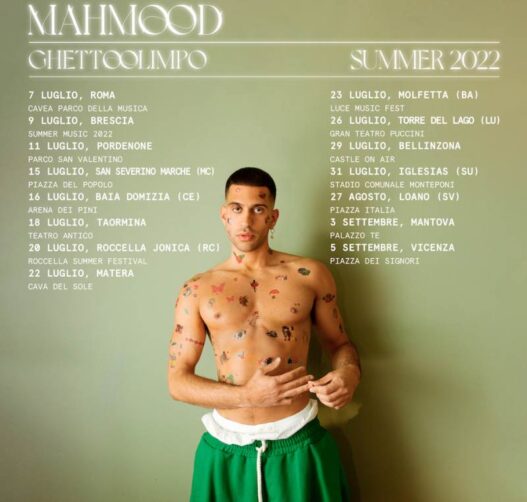 Mahmood è in partenza il suo Ghettolimpo Summer Tour: 15 concerti che lo porteranno a esibirsi nelle principali città e nei festival, in alcune dei più suggestivi luoghi in Italia.