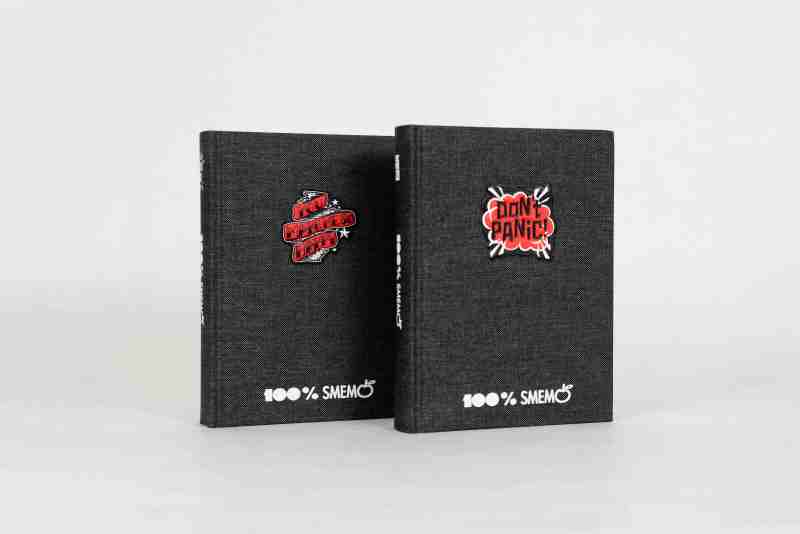 La prima è ispirata alla moda delle PATCH in voga negli anni ’80, tornata alla ribalta grazie alle applicazioni su jeans, giubbotti e accessori. Insomma, la Smemo si trasforma nel paio di jeans preferito grazie a una copertina a effetto denim con sopra una patch removibile da staccare e attaccare e riutilizzare anche su altre superfici. Le patch in ecopelle hanno due diverse ispirazioni: “Don’t panic!”, per i momenti difficili a scuola, e “You make me so happy”, che riprende il lettering dei tatuaggi “old school” e che ci fa impazzire d’amore (o di amicizia).