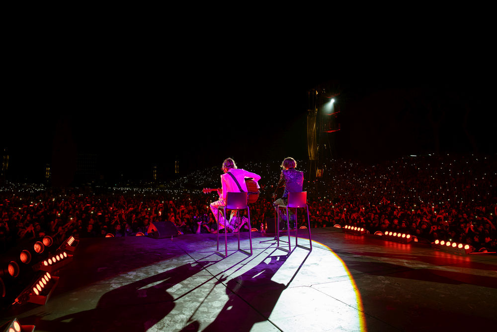 È stato uno spettacolo sorprendente ed energico: due ore di concerto con una scaletta in cui è stata ripercorsa ogni tappa fondamentale della band, dai primi brani che li hanno fatti conoscere al pubblico come “CHOSEN” (tratto dall’omonimo EP, certificato  doppio platino e disco d’oro nel mondo) e “TORNA A CASA” (tratto dall’album “Il Ballo della Vita” che conta 8 dischi di platino e due dischi d’oro a livello mondiale), fino agli ultimi grandi successi che hanno aperto loro le porte del mondo, come “ZITTI E BUONI” (certificato internazionalmente con 1 disco di diamante, 20 dischi di platino e 6 dischi d’oro), “CORALINE” (3 dischi di platino e 2 dischi d’oro sempre a livello mondiale) – entrambi contenuti nell’album “Teatro d’ira – Vol. I”, che conta 32 dischi di platino e 7 dischi d’oro a livello mondiale – e “MAMMAMIA” (3 dischi d’oro nel mondo), fino al nuovo singolo “SUPERMODEL” (certificato disco d’oro).