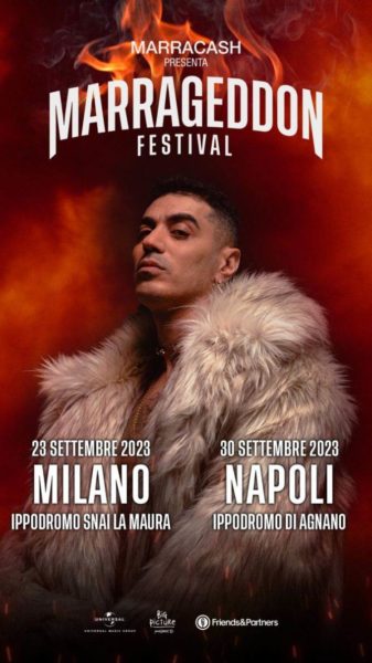 Arriva a settembre l’unico show del King del Rap per il 2023: MARRAGEDDON, il primo festival di un rapper in Italia, due grandi concerti, un viaggio musicale, una grande festa capace di unire due capitali del rap nazionale, da nord a sud, da Milano a Napoli.