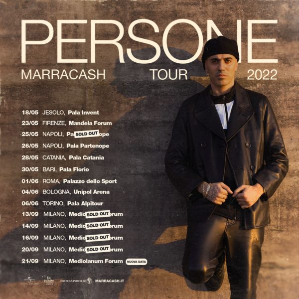 Come da comunicazione appena diffusa sui social, relativa al rinvio del tour, partirà a maggio 2022 il “PERSONE TOUR 2022” di Marracash, organizzato da Friends & Partners.