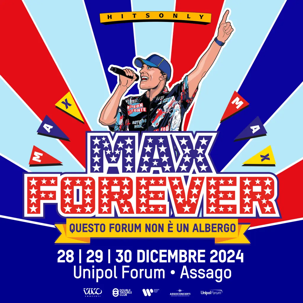 I biglietti per MAX FOREVER – Questo Forum non è un Albergo sono in vendita online da venerdì 05 luglio 2024 alle ore 14:00 e in tutti i punti vendita autorizzati da mercoledì 10 luglio 2024 alle ore 11:00.