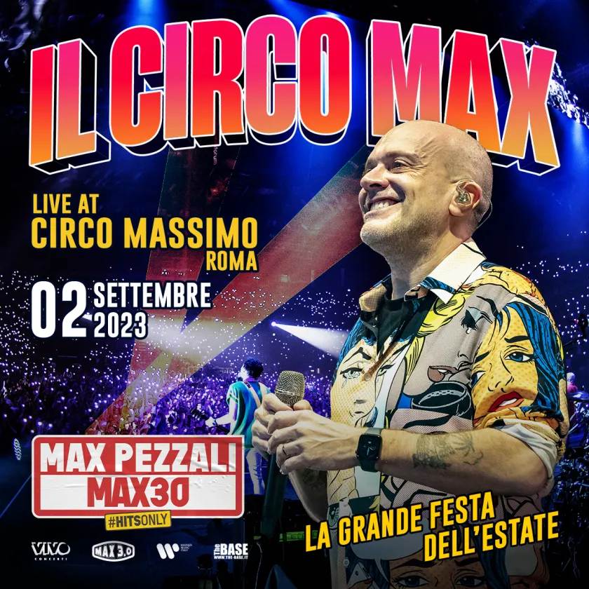 Dopo le celebrazioni a luglio 2022 dei suoi 30 anni di carriera con la doppia data di SAN SIRO CANTA MAX, e l’inizio del travolgente tour sold out nei Palasport #HITSONLY, ora la grande festa di Max fa tappa al Circo Massimo di Roma, uno dei luoghi storici della Capitale nonché tra le più suggestive e celebri location di musica dal vivo all’aperto in Italia e nel mondo.