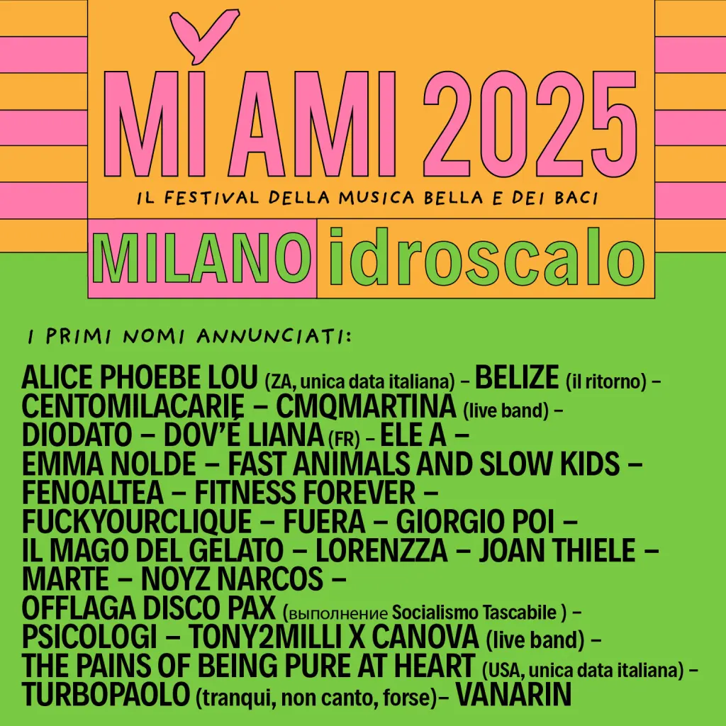 Il MI AMI continua a distinguersi per la qualità e la varietà della sua line-up, mescolando grandi artisti e nuove promesse della scena musicale. Anche in questa edizione, il festival mantiene la sua vocazione alla scoperta e alla bellezza, portando sul palco artisti capaci di creare connessioni tra le arti e stimolare nuove esperienze.