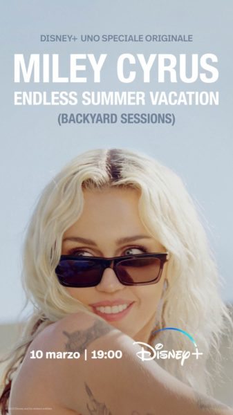 Prodotto da Miley Cyrus, dalla pluripremiata società di produzione creativa RadicalMedia, da HopeTown Entertainment, da Crush Management e dalla Columbia Records, Miley Cyrus – Endless Summer Vacation (Backyard Sessions) debutterà venerdì 10 marzo alle 19:00 (ora italiana) su Disney+.