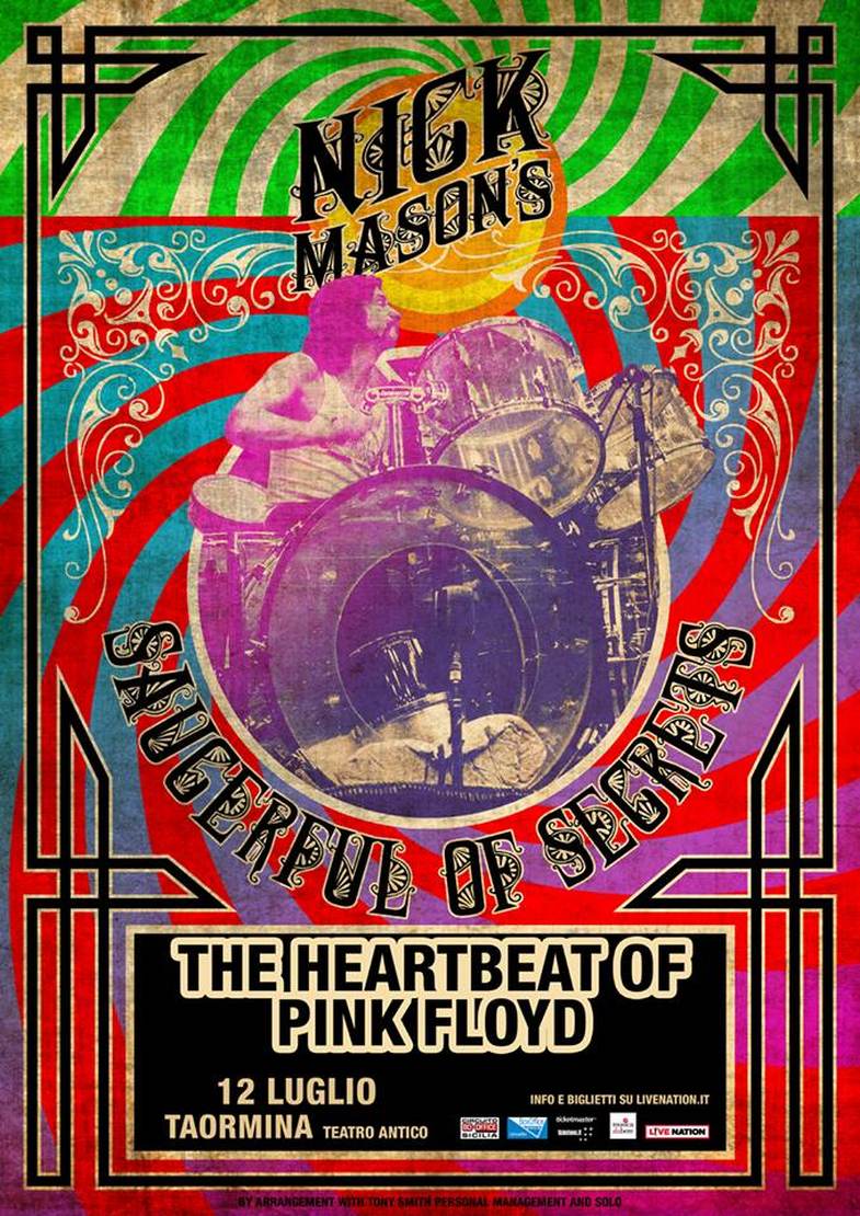Nick Mason è attesissimo in Italia anche l’8 luglio a Chieti (Arena La Civitella), il 14 a Ravenna Festival (Pala De André), il 16 al Rock in Roma (Aditorium Parco della Musica), il 17 luglio all’Umbria Jazz di Perugia (Arena Santa Giuliana) e il 18 a Brescia (Piazza Della Loggia).