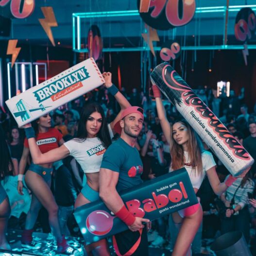 Il prossimo 7 luglio l’atmosfera sarà dominata dal format iconico per gli amanti degli anni dei Nirvana e del primo Jovanotti. Sul palco ci saranno figuranti come Spider Man e Mario Bros accompagnati da scenografie, come quella per Jurassic Park, ma anche la presenza di ballerine in stile “BayWatch”, il format televisivo Stranamore per chi cerca l’anima gemella e giganteschi pacchetti di chewing gum Brooklyn (ma anche le gommose Morositas) accompagnati dalle Wonder girls. Alla consolle, tutte le hit pop, rock e dance mixate, brani indimenticabili da cantare a squarciagola e i singoli che hanno scalato le classifiche di un decennio glorioso. A completare lo show una serie di effetti speciali e una super video sigla: un’ondata di musica e spettacolo, una festa ricca di animazione, dj, ballerini, personaggi iconografici, gadget, effetti speciali e video show.